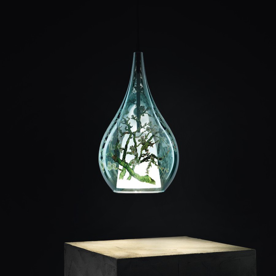 z.B. Glas-Pendelleuchte, drei Größen bei uns im Geschäft zur Ansicht,